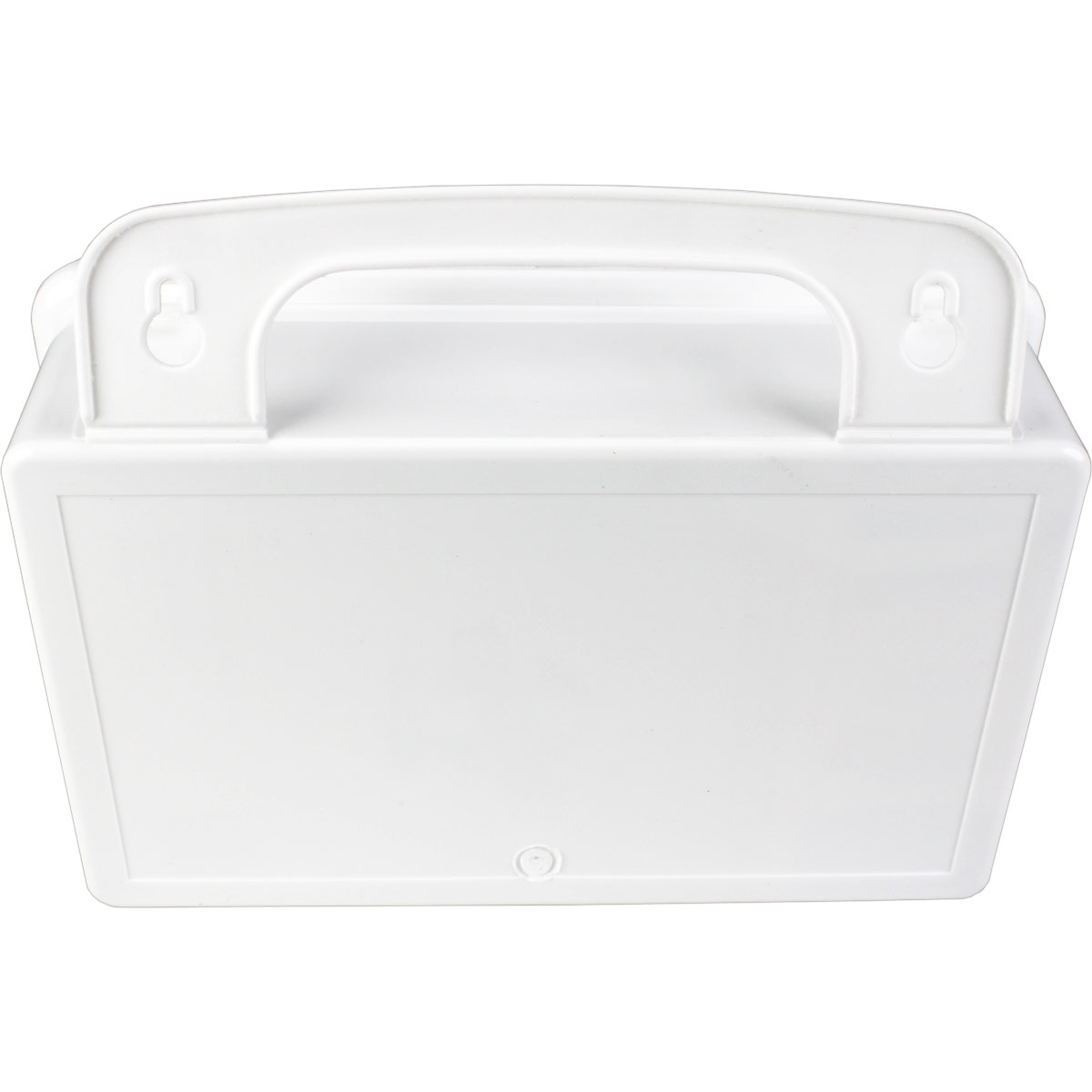 The water-resistant polypropylene (plastic) case is wall mountable yet has a handle for easy carrying and a rubber gasket to help keep moisture and dust from contaminating your first aid content items.