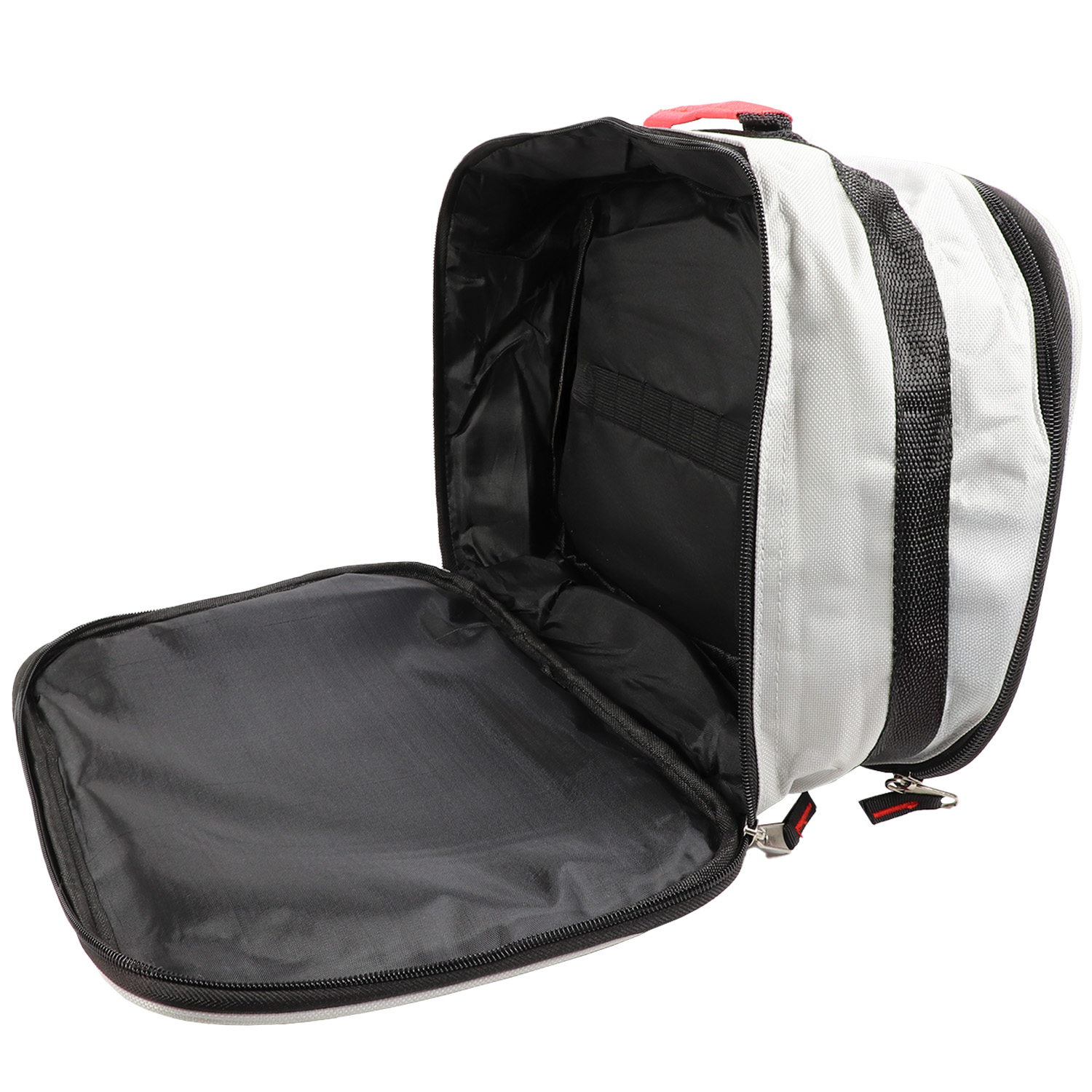 This auto bag fits perfectly in the trunk or under the back seat of your car. An external pocket contains a folding floor mat.