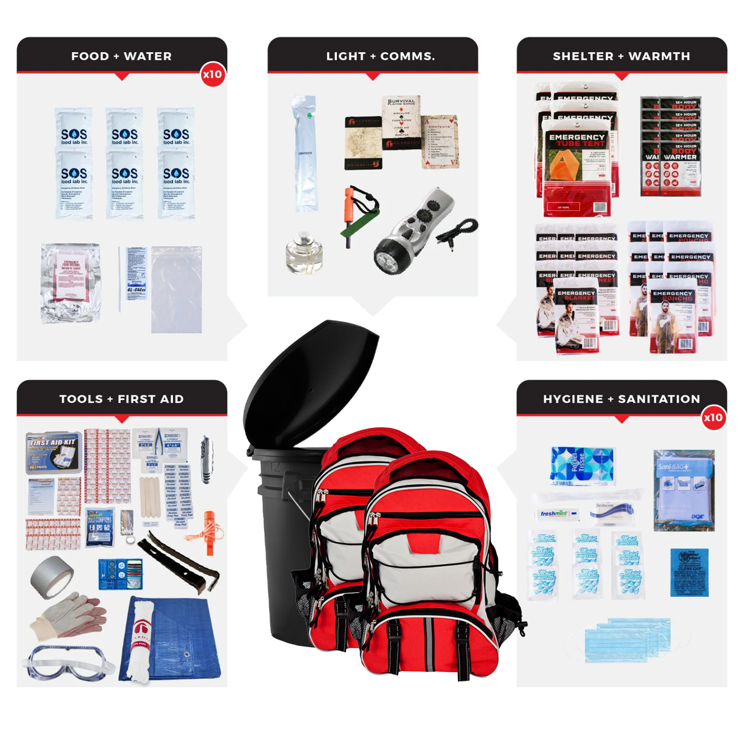 Bucket Survival Kit for 10 People Bucket Survival Kit for 10 People